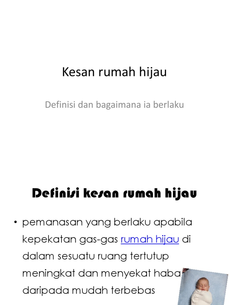 DEFINISI KESAN RUMAH HIJAU Kesan rumah hijau ialah pemanasan yang berlaku apabila kepekatan gas-gas rumah hijau karbon dioksida karbon monoksida nitrogen dioksida di dalam sesuatu ruang tertutup meningkat dan menyekat haba daripada mudah terbebas. Hijau di dalam sesuatu ruang tertutup meningkat dan menyekat haba daripada mudah terbebas. Selain itu udara di dalamnya turut dipanaskan dan kekal tanpa boleh terlepas keluar daripada.
